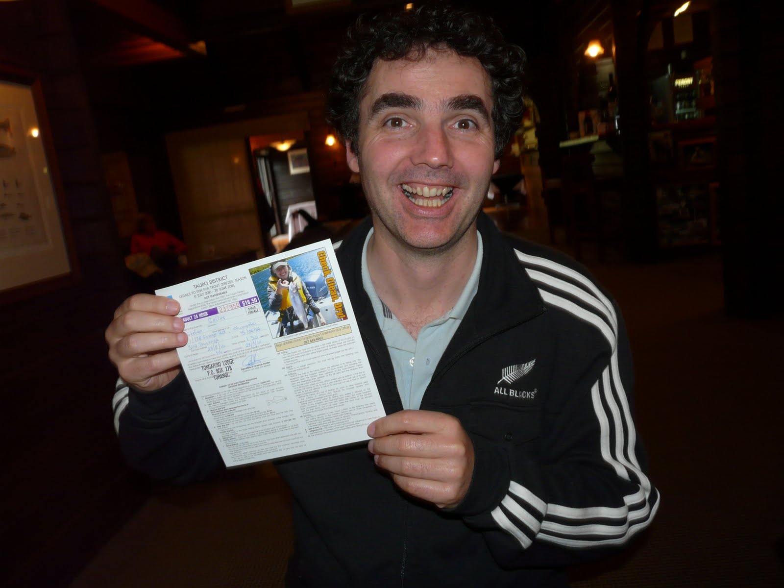 http://de.wikipedia.org/wiki/RuapehuIch war fuers Fliegenfischen angemeldet. Hab ich noch nie gemacht und bei Regen in Gummistiefeln, die bis zur Huefte gehn in nem Fluss rumstehn fand ich schon immer cool (im wahrsten Sinne des Wortes). Kurz gesagt.... nix erwischt (die Forellen lachen, glaube ich, heute noch). Eine hat ein wenig gezupft, ne andere hat ungefaehr 1,45 Sekunden mit dem Haken gespielt und ich durfte sie zum Lueften einen Meter durch die Luft werfen. Aber das wars dann auch schon. Unser Guide war zufrieden. Fuer 10 Minuten Theorie und 4 Stunden angeln waren wir nicht schlecht. Immerhin hatte das andere Team mehr Glueck. Naja, Paul ist eigentlich schon seit einigen Jahren Fliegenfischer. Also musste er ja punkten (1:0 in Forellen fuer ihn ;-) )